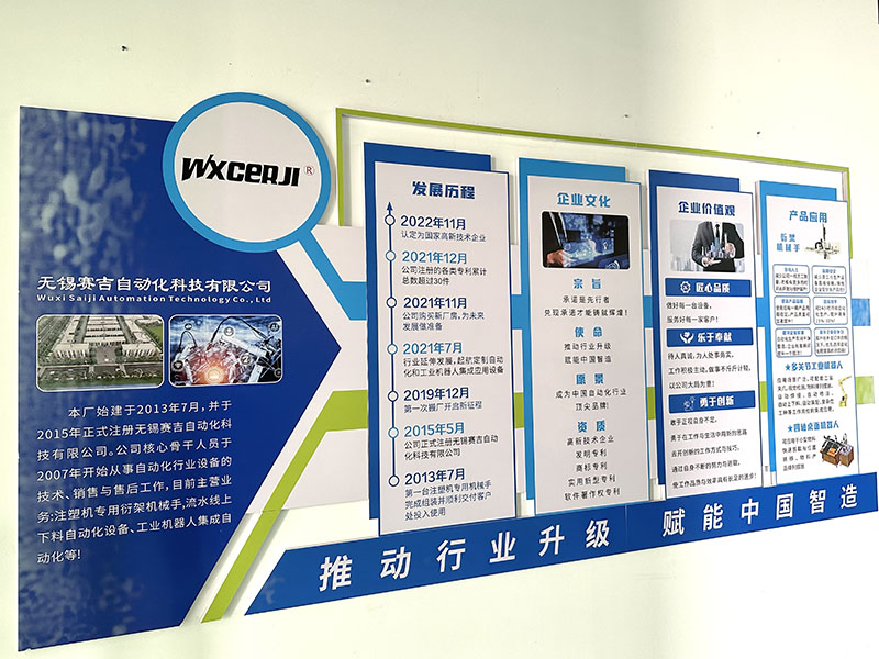無錫賽吉自動化科技有限公司始建于2013年5月。公司幾位核心骨干人員在2007年到2009年分別入行從事注塑機專用機械手研發、設計、機電、組裝、銷售與售后工作,目前企業分別有三大塊經營項目:自動化設備(數控車床、注塑機專用取件機械手為主)設計、生產、銷售與服務。